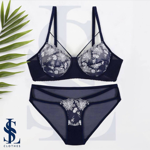 ناموجودست شورت و سوتین گیپور مشکی با گلدوزی آبی نوشه
