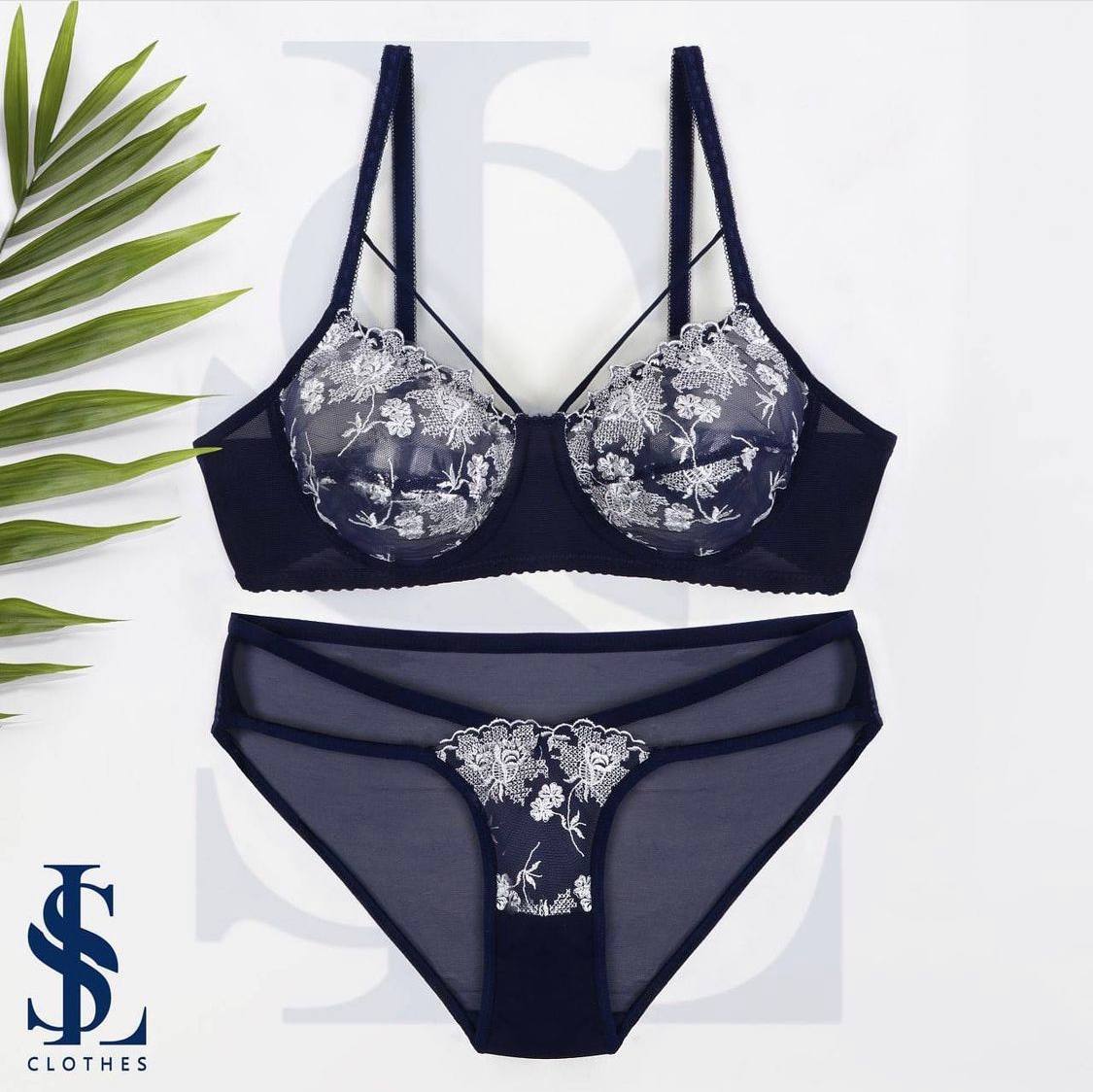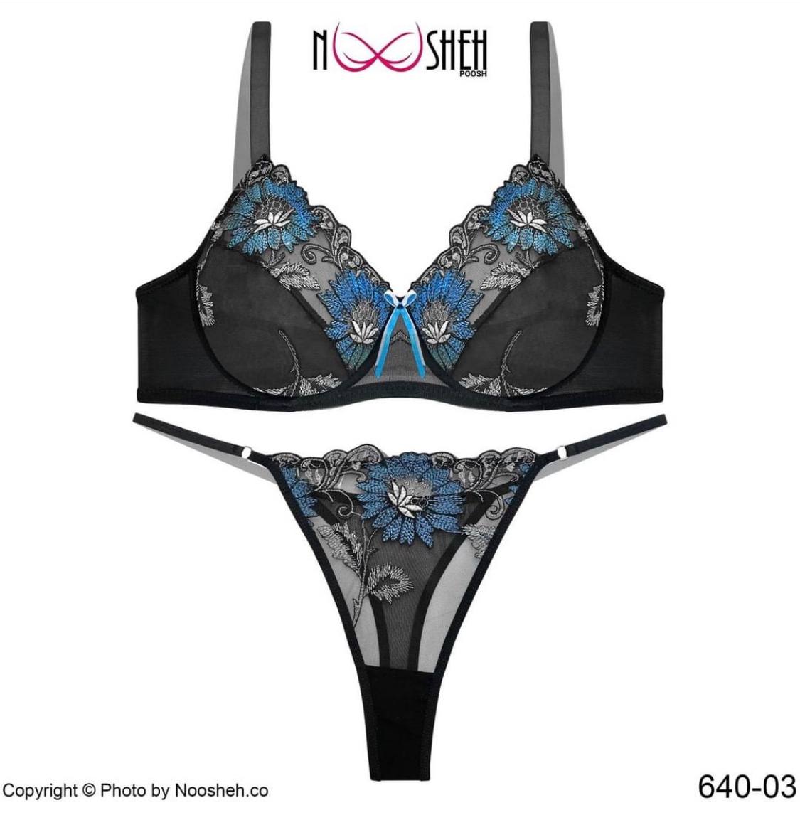 ناموجودست شورت و سوتین گیپور مشکی با گلدوزی آبی نوشه